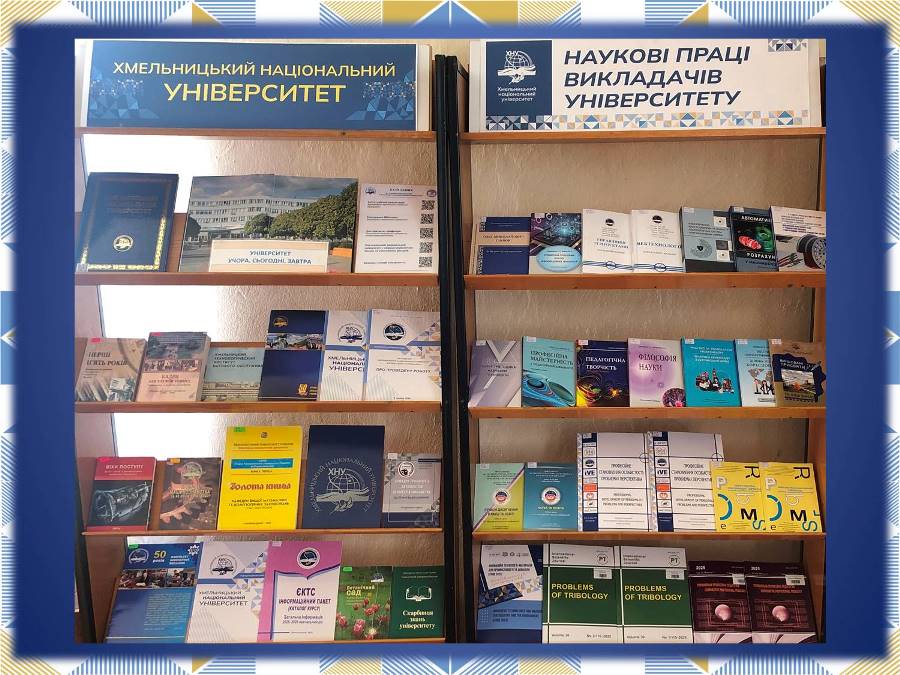 📖    – виставку видань викладачів Хмельницького національного університету за 2025 рік, що висвітлює нові здобутки науковців вишу (у межах постійно діючої виставки «Наукові праці викладачів університету») − читальний зал, 7-й поверх;