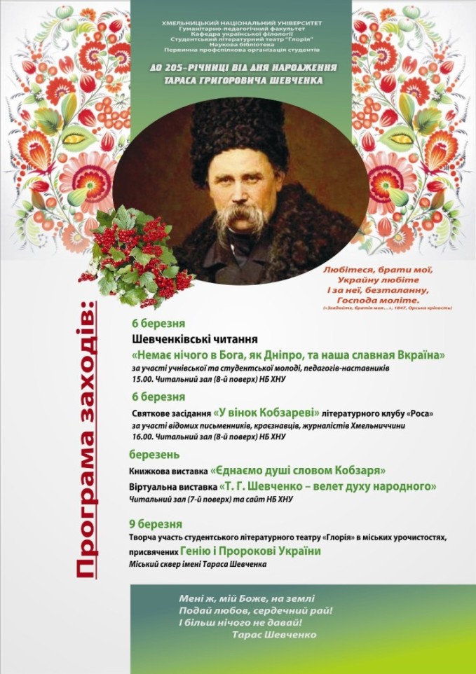 Шевченківські читання "Немає нічого в Бога, як Дніпро, та наша славная Вкраїна"