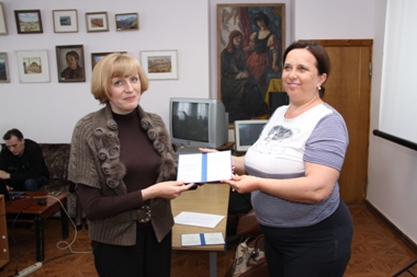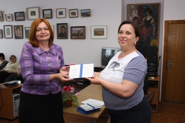 Впродовж двох місяців 30 працівників НБ ХНУ проходили дистанційне навчання в Національній академії керівних кадрів культури і мистецтв. В рамках курсу "Управління бібліотекою та нові послуги для користувачів" працівники виконували самостійні, практичні та контрольні завдання, брали участь у дискусіях за модулями "Проектна діяльність в бібліотеках", "Психологічні основи управління бібліотекою", "Адвокаційна діяльність бібліотек: захист та лобіювання інтересів". На заключному етапі, підсумкову лекцію у бібліотеці прочитала Шевченко Ірина Олександрівна - директор ІПО НАКККіМ, кандидат педагогічних наук, доцент, заслужений працівник культури України, президент Української бібліотечної асоціації, яка після успішної здачі працівниками заліку урочисто вручила Свідоцтва про підвищення кваліфікації. |
