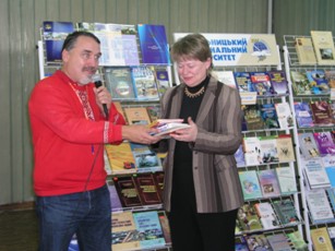 Бібліотека отримала в подарунок авторський примірник нової книги "Щоденник моєї секретарки", а також раніше видану публіцистику "Закон Братів Капранових" з автографами письменників. Київські гості залишили на згадку ще і дві збірки сучасних українських поетів - "V.I.P.: іронична поезія" та "Ніч еротичної поезії", з якими можна ознайомитися на абонементі старших курсів, наукової та художньої літератури.