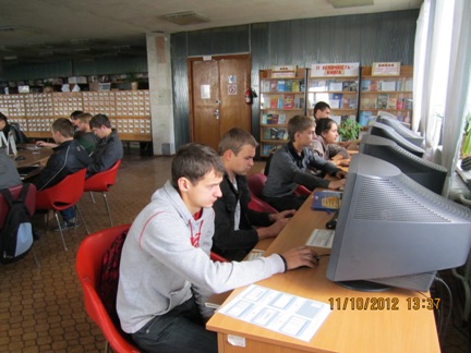 11 жовтня в залі каталогів та електронної інформації НБ ХНУ з метою удосконалення знань з наукового пошуку інформації відбулися "Дні магістра" для магістрів механічних та технологічних спеціальностей. Присутні мали можливість ознайомитись з різними джерелами пошуку інформації, сервісними послугами НБ ХНУ і практично здійснити пошук інформації за темою своєї магістерської роботи, використовуючи електронні ресурси та інформаційні можливості бібліотеки. |