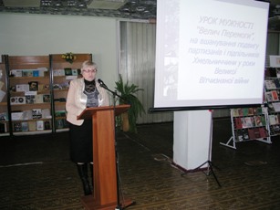 16 квітня в книгозбірні відбувся урок пам’яті "Війна очима письменників", під час якого було переглянуто відеоматеріали часів Великої Вітчизняної війни, а завідувачка сектора абонементу старших курсів, наукової та художньої літератури бібліотеки Молчанова С.А. ознайомила присутніх з неперевершеними художніми творами митців світової літератури, які прагнули розповісти про подвиг цілого покоління, яке зуміло вистояти і перемогти у боротьбі з чужоземною навалою. Серед українських письменників воєнної пори - Андрій Малишко, Олександр Довженко, Володимир Сосюра, Павло Тичина, Олесь Гончар, Ліна Костенко та багато інших.