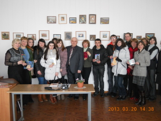 У поле вийдіть — жайвір зве увись, На милі очі так волошки схожі. Не вірю, що романтики звелись, Бо Мавки пісня згинути не може. Віталій Міхалевський Всесвітній день поезії — свято, яке відзначається щороку 21 березня. Як і весняна пора, поезія пробуджує життя, освітлює душі, різнобарвить прозу. Вона торкається сердечних струн, розкриває неосяжні глибини художнього таланту митців, веде у край високого натхнення.20 березня з нагоди Всесвітнього дня поезії в літературній вітальні наукової бібліотеки відбулась презентація збірки "Перші черешні" відомого подільського поета Віталія Міхалевського. Природа наділила В.Ц. Міхалевського самобутнім талантом: любов до поезії Віталій Цезарійович поєднує з любов'ю до математики. Він — доцент кафедри інформаційних технологій проектування ХНУ, кандидат фізико-математичних наук, а також заступник голови обласного об'єднання товариства "Просвіта" ім. Т.Г. Шевченка. Лауреат міської премії імені Богдана Хмельницького (2006) за літературну діяльність. Автор збірок : "Я жду весну" (2003), "Крапелина вина, або Уроки української"(2005), "Година пік, або Твір на власну тему" (2006), "Місце під сонцем" (2006), "Невиправний романтик, або Як я провів літо" (2011р.), має аудіозбірку віршів "Соло на трубі". Ніжний, емоційно-чутливий лірик В. Міхалевський вірний своєму покликанню. І сьогорічна книжка "Перші черешні" переконує, що поет не зраджує музі. До книги увійшли ліричні вірші, поезії громадянської та філософської тематики. Вони настільки тісно переплітаються, що складають цілісну палітру глибоких почуттів. Як і попередні збірки, свою нову, з любов'ю видану книжку, Віталій Цезарійович подарував книгозбірні національного університету. Присутні на презентації студенти, співробітники університету та бібліотеки отримали чудові хвилини дотику до неповторності і чарівності вічної поезії. ![]() |