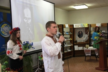 ![]() В рамках святкування 200-річчя від дня народження пророка і світоча української нації, поета-месії Тараса Шевченка 4 березня в книгозбірні Хмельницького національного університету відбувся літературно-мистецький проект "Встане правда! Встане воля!". Організаторами проекту виступили наукова бібліотека університету (директор бібліотеки О.Б. Айвазян, головний бібліотекар О.М. Великосельська), літературний студентський театр "Глорія" ХНУ (директор театру М.А.Савюк, художній керівник Т.П.Коваль) та Управління молоді та спорту Хмельницької міської ради (начальник В.І.Вешко).