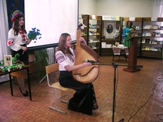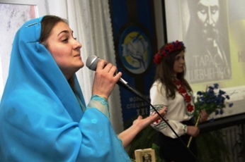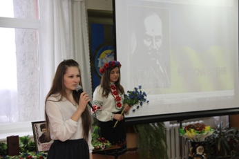 На захід завітали студенти, шанувальники творчості Великого Кобзаря, а також поважні гості: проректор з науково-педагогічної діяльності, доктор економічних наук, професор М. П. Войнаренко, заступник начальника управління молоді та спорту Хмельницької міської ради О.В. Мандзій, які щиро привітали присутніх зі знаменною датою – 200-річчям Великого Кобзаря. Під час проведення заходу презентувались книги Всеукраїнської шевченкіани із фондів університетської наукової бібліотеки, присутні переглянули кіномонтаж із художніх фільмів про життєвий та творчий шлях Т.Шевченка. Михайло Войнаренко, відомий на Хмельниччині як громадській діяч і поет - романтик, прочитав свої вірші, присвячені Великому Кобзареві. У виконанні учасників літературного театру "Глорія" А.Варениці, К.Волошиної, А.Євсюкової, В.Лімбах, Л.Кутей, Л.Більчук, Я.Лисої, Н.Проциш, О.Брянгіна, О.Іванчишин прозвучала літературно-музична композиція на вірші Т. Шевченка. Також на святі виступила студентка Хмельницького музикального училища ім. В. Заремби М. Круть. Національно-патріотичний клуб студентської ради ХНУ "Ми - українці" презентували А. Козак та Р. Рагульський. |