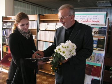 Впродовж кількох століть український народ привчали до думки про нібито "вторинність" української мови, ретельно приховуючи від українців величезний масив української писемності, історії та культури, яка сягає глибокої давнини. Це величний скарб, який ми перейняли від пращурів та несемо у світ, аби усі знали, що ми українці. З нагоди свята в науковій бібліотеці відбулась зустріч студентів та працівників бібліотеки з відомим подільським краєзнавцем-дослідником, істориком, архівістом, заслуженим працівником культури України, академіком Технологічної Академії України Петром Яковичем Слободянюком. Цю людину без перебільшення можна назвати літописцем Подільського краю. Ми й досі перебуваємо у пошуках національної ідеї, яка б звеличувала нас, надихала на подвиги. А Петро Слободянюк своїми книгами стверджує: для цього треба ретельніше й глибше вивчати історію свого народу, щоб відчути "славу тую...". Його книги та наукові праці "Культура Хмельниччини", "Українська церква", "Чорна дошка" України: події 30-х років", "Зберегти духовність нації", "Етнокультурний геноцид на Хмельниччині у 30-50-х роках", "Подільській етнокультурі - наукову основу", "Щодо концепції відродження культури України", "Педагоги Хмельниччини: жертви сталінських репресій", "Воєнне лихоліття на Поділлі (1941-1945 рр.)", "Нескорені. Національно-визвольна боротьба ОУН-УПА на чолі з генерал-Хорунжим Романом Шухевичем", "Розіп’яте Голодомором Поділля" та інші вчать оберігати й захищати свою землю від зайд-завойовників, як це робили великі, освічені наші древні й недавні предки. Вчать шанувати пам'ять про них, підносити нашу духовність до світових висот, примножувати культуру, робити висновки з трагічних сторінок і на яких засадах розбудовувати незалежну державу. В доброзичливій і невимушеній атмосфері пройшла зустріч. Петро Якович розповів про свої праці, звернув увагу на актуальні проблеми історії незалежної України, малодосліджені сторінки історії Хмельниччини, відповів на запитання та закликав студентів вивчати свою історію, шанувати себе і тоді світ шануватиме нас. На згадку про зустріч Петро Якович подарував бібліотеці одну з своїх останніх книг. Присутні ознайомилися з книжковою виставкою видань автора. |