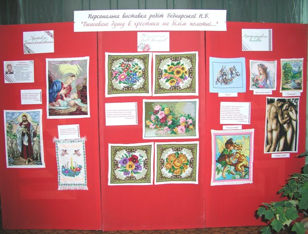 В читальному залі 6 поверху спільно з радою ветеранів університету організувано виставку вишитих робіт ветерана книгозбірні Беднарської Ніни Броніславівни. Народилася майстриня 12 грудня 1938 року в селі Розсохи Деражнянського району Хмельницької області. Пропрацювала Ніна Броніславівна в НБ ХНУ 30 років, 16 з яких на посаді заступника директора бібліотеки. Біля 20-ти років тому Ніна Броніславівна вийшла на заслужений відпочинок. Але просто займатись хатньою роботою та відпочивати вона не змогла, руки просили роботи. І як творча особистість вона почала вишивати. Спочатку, тільки-но відкривши в собі хист до "ниткового живопису", Ніна Броніславівна вирішила вишити маленькі картини, щоб, так би мовити, спробувати себе у вишивці, потім з’явились серйозніші роботи. На своєму прикладі вона показала, що, як і коханню, творчості підвладні усі роки. На виставці представлена лише частина творчого доробку майстрині. Багато своїх робіт вона подарувала дітям та онукам, подругам, колегам. В свої полотна вона вклала не лише натхнення майстра і лагідність працелюбних рук, а й краплинку щирого серця і творчої душі. ![]() |