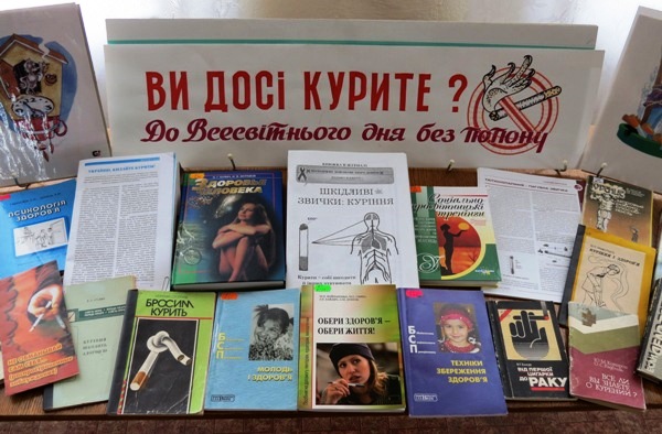 руйнує розум, отупляє цілі нації Оноре де Бальзак Куріння тютюну відноситься до числа найбільш поширених шкідливих звичок в більшості країн світу. У деяких з них число курців на порядок вище, ніж кількість некурящих людей. Саме тому Всесвітня організація охорони здоров'я розробила заходи для викорінення куріння в XXI столітті. І поява Всесвітнього дня без тютюну — це один із способів досягнення цієї мети. У читальному залі наукової бібліотеки підготовлено книжкову виставку "Ви досі курите?" Експозиція розповідає про вплив тютюнового диму на здоров’я та про те, як позбутися цієї шкідливої звички. На сайті бібліотеки пропонуємо переглянути віртуальну виставку "Правда про куріння". |