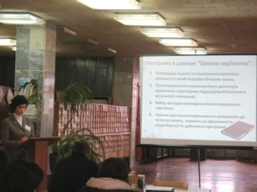 8 листопада у науковій бібліотеці проведено заняття з підвищення кваліфікації для бібліотекарів професійно-технічних навчальних закладів Хмельницької області. Присутні прослухали лекції директора наукової бібліотеки, к.і.н. О.Б.Айвазян, заступника директора О.О. Мацей, завідувачів інформаційно-бібліографічного відділу О.М. Бичко та відділу комплектування та наукової обробки документів В.В. Фоміних. Вони висвітили особливості організації роботи бібліотеки навчального закладу, розвитку ресурсної бази, впровадження інформаційних технологій, удосконалення бібліотечно-бібліографічного обслуговування читачів. Бібліотекарі навчальних закладів професійно-технічної освіти ознайомилися з матеріалами книжкової виставки "Бібліотека: забезпечення доступу до інформації. Інновації в дії" та здійснили екскурсію по бібліотеці. |