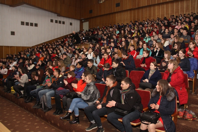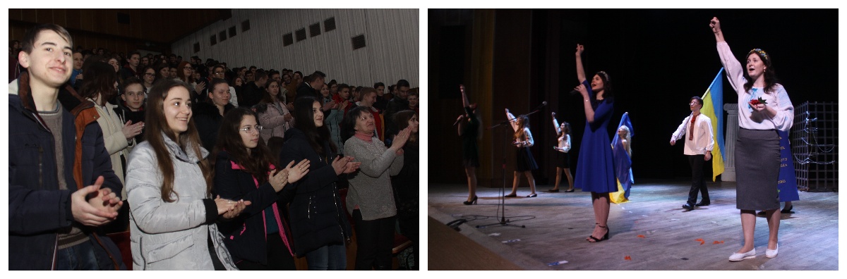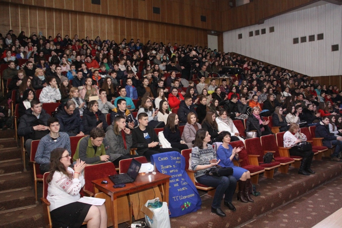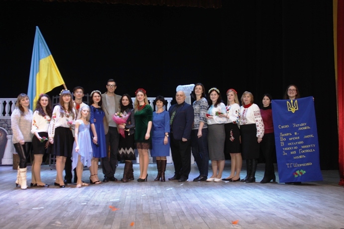 Любов – Господня благодать! Автор ідеї та сценарію Шевченківської вистави "Диригент кохання і …Любові" – керівник студентського літературного театру "Глорія" Т. П. Коваль, старший викладач кафедри української філології. ![]() За високу професійну майстерність, популяризацію творчості Тараса Григоровича Шевченка, участь у культурно-мистецьких заходах з нагоди 204-ї річниці від дня народження поета Студентський літературний театр "Глорія" Хмельницького національного університету (керівник – старший викладач кафедри української філології Коваль Таїсія Петрівна) нагороджено Подякою Хмельницької міської ради. ![]() Виставу театру "Глорія" організовано у співпраці: кафедра української філології під керівництвом доктора філологічних наук, професора М. М. Торчинського, наукового консультанта театру; наукова бібліотека Хмельницького національного університету, директор О. Б. Айвазян, кандидат історичних наук; первинна профспілкова організація студентів, голова А. А. Вичавка. Оргкомітет Шевченкіани ХНУ (2018): член Національної спілки письменників України, доцент ХНУ, координатор студентського літературного театру "Глорія" В. Ц. Міхалевський; завідувач науково-методичної та просвітницької роботи НБ ХНУ О. М. Великосельська, провідний бібліотекар О. В. Шаєвська; помічники керівника театру – кандидат філологічних наук, доцент М. М. Гавриш, викладач кафедри української філології А. М. Янчишин; голова Ради театру "Глорія", магістранта спеціальності "Філологія. Українська мова і література" Ю. Довганюк. Дослідження з теми Шевченківських життєтворчих імперативів для відеопрезентації художнього задуму зроблено автором ідеї та сценарію; переможцем І Шевченківського конкурсу митців ХНУ "Дніпро, Україну згадаєм…" О. Івасенком, переможцем VII Міжнародного мовно-літературного конкурсу учнівської та студентської молоді імені Тараса Шевченка М. Клопотюк, президентом клубу ораторів "Сократ" Ю. Довганюк. ![]() Першим акордом до глоріанської вистави "Диригент кохання і… Любові" був виступ голови Хмельницького обласного об’єднання Всеукраїнського товариства "Просвіта" імені Тараса Шевченка, координатора студентського літературного театру "Глорія" Віталія Цезарійовича Міхалевського, який презентував багатогранну Шевченкіану Хмельницького національного університету і патріотично-мистецьку творчість "Глорії". Відомий український поет-романтик, лауреат Хмельницької міської премії ім. Богдана Хмельницького та Хмельницької обласної премії ім. Тараса Шевченка звернувся до української спільноти з натхненним словом авторської поезії "Тарас": Йдемо до тебе й несемо, Кобзарю, У дні святкові, в пору лихоліть У спраглих душах попри біль і чвари – Твій клич: "Свою Україну любіть!" У пролозі до Шевченківської вистави чуттєво прозвучала пристрасна поезія "Присвята Кобзареві" переможця поетичних конкурсів, президента літературного клубу "Роса", лідера спеціальності "Філологія. Українська мова і література" Юлії Лавренчук (солістка театру, староста групи ФУМ-14-1).
