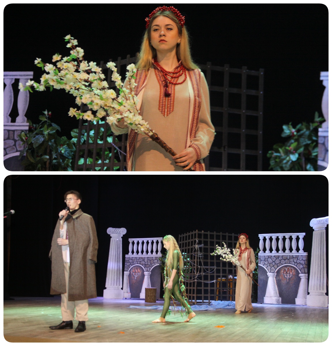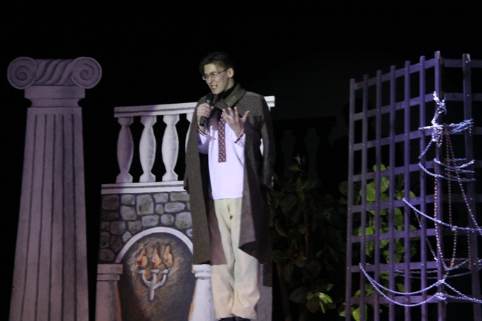 …Я повернусь до Тебе у віршах, Бо Ти, Шевченку, нам даруєш крила! Політичну сатиру, за яку тоталітарна російська царська імперія позбавила Художника Шевченка волі й "нагородила" солдатським чином, – гротеск "Сміюсь і плачу" бездоганно і майстерно висвітлила Юлія Довганюк. Головну роль Тараса Шевченка емоційно-експресивно та блискуче виконав Олександр Івасенко (соліст театру, асистент режисера, студент групи МЛМС-17-2). Глибокі переживання Душі Шевченка-солдата – Шевченка-українця – Шевченка-академіка засобами хореографічного і словесного мистецтва окрилено вдалось передати Катерині Шаєвській (солістка і хореограф театру, переможець всеукраїнських та міжнародних конкурсів із спортивних і сучасних танців, учениця Технологічного багатопрофільного ліцею ім. Артема Мазура). ![]() Перше кохання Генія – Оксану Коваленко своєю мистецькою грою, виконанням акапельно найулюбленішої народної пісні Тараса Шевченка "Ой, ізійди, зійди ти, зіронька вечірняя" неначе оживила на сцені для сучасників Олена Карпова (солістка і культорг театру, студентка групи ФУМ-15-1, голова профспілкового бюро ГПФ Ппос ХНУ). ![]() Поетичне кохання Генія – світлий образ аристократки Варвари Рєпніної, яку Поет у житті боготворив, а у поемі "Тризна" величав "тихий ангеле мій…", трепетно втілено Юлією Довганюк. ![]() Образ доленосної жінки, пристрасного кохання Генія – Ганни Закревської у ритмі весняного вальсу Шопена романтично втілено Тетяною Лампіцькою (солістка і хореограф театру, студентка групи СП-15-2). ![]() Шевченкову ідею зображення українських мадонн в образі Катерини виразно і майстерно втілено глоріанками Яною Москаленко та Іванною Харітоновою (солісти театру, студентки групи ФУМ-16-1). ![]() Своїми враженнями від перегляду театральної вистави поділилася вчителька української мови та літератури однієї із загальноосвітніх шкіл м. Хмельницького: "Приємно, що у нашому місті є студентський театр "Глорія" й актори-аматори такого високого рівня. На мою думку, режисеру вдалося у виставі за мотивами творів Т. Г. Шевченка майстерно поєднати театральне мистецтво, хореографію та співи. Вистава вийшла живою, насиченою і пролетіла на одному диханні. Захопилась грою акторів, адже на сцені вирували справжні, щирі емоції. На жаль, хочу зазначити, що сатирично-викривальні поезії Великого Кобзаря вивчаються у середній школі не так глибоко, а тому менш відомі учням... Дякую глоріанцям, що вони віддали нам, глядачам, частинку свого серця та своєї внутрішньої краси! Бажаю подальших творчих злетів "Глорії"! А Хмельницькому національному університетові – гарних талановитих студентів!". ![]() ![]() Ми пишаємось нашими славними глоріанцями – зірковими студентами сьогодні та громадянами-патріотами, успішними фахівцями у майбутній професійній діяльності! Надзвичайно радісно, що на прем’єру вистави молодіжного театру ХНУ прийшли батьки, вчителі, друзі наших артистів. Сердечно привітали Олександра Івасенка – талановитого виконавця головної ролі Кобзаря – мама і шкільна вчителька! ![]() Улюблена Шевченком музика українських кобзарів, Баха, Россіні, Паганіні, Моцарта, Шопенау виставі підсилювала світоглядний парадокс Генія "Сміюсь і плачу" – пророче бачення Великим Українцем трагіко-комічної дійсності свого часу. Кобзар мужньо і гідно зробив земний вибір на користь безсмертної Любові д