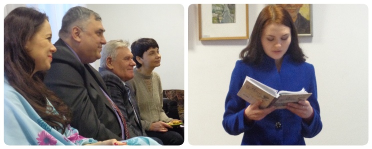 Святкове засідання "У вінок Кобзареві" літературного клубу "Роса" кафедри української філології 15 березня 2018 року з нагоди 204-ї річниці від дня народження Тараса Шевченка у літературній вітальні наукової бібліотеки Хмельницького національного університету відбулося святкове засідання дипломанта Хмельницького міського літературного фестивалю "Слово єднає!" літературного клубу "Роса" кафедри української філології. ![]() З 2011 року молоді та знані літератори у вінок Кобзареві присвячують оригінальні твори, ведуть щиру розмову про Генія і з Генієм.Перша доленосна зустріч відбулася з членом Національної спілки журналістів України О. А. Відоменком – праправнуком Т. Г. Шевченка. ![]() Авторська творчість студентів і викладачів презентується в університетському художньо-публіцистичному альманасі "Думки творчий злет". Духовним наставником талановитої молоді та головним редактором альманаху є відомий український поет-пісняр Михайло Петрович Войнаренко – перший проректор, проректор з науково-педагогічної та наукової роботи Хмельницького національного університету, заслужений діяч науки і техніки України, член-кореспондент НАН України. ![]() Літературний клуб "Роса" відкрито при студентському літературному театрі "Глорія" кафедри української філології ХНУ. Українські філологи публічно захищають творчу практику у рамках навчальної дисципліни "Основи літературної творчості" та культурно-освітнього проекту "Презентація молодих літераторів і театралів". ![]() Цьогоріч на засіданні "Роси" було як завжди затишно і водночас феєрично піднесено! Приємно дивували студентську аудиторію своїми цікавими розповідями, дотепними жартами, літературними новинками та імпровізаціями вельмишановані гості – доктор економічних наук, професор, автор поетичних збірок Михайло Войнаренко; голова Хмельницького обласного об’єднання ВУТ "Просвіта" імені Тараса Шевченка, член Національної спілки письменників України, поет-романтик, координатор театру "Глорія" Віталій Міхалевський; доктор філологічник наук, професор, завідувач кафедри української філології, науковий керівник літературного клубу "Роса"Михайло Торчинський; кандидат педагогічних наук, завідувач кафедри слов’янської філології Неля Подлевська; кандидат історичних наук, директор НБ ХНУ Олена Айвазян; кандидат філологічних наук, член "Конгресу літераторів України", дитяча письменниця Марія Дем’янюк; член Національної спілки журналістів і Національної спілки письменників України, поет і прозаїк, гуморист і сатирик Михайло Цимбалюк. ![]() Засідання клубу вели науковий керівник Таїсія Ковальта президент "Роси", лідер спеціальності "Філологія. Українська мова і література" Юлія Лавренчук. Вони запропонували учасникам свята перегляд авторського відеофільму про сподвижницьке життя і безсмертну творчість Тараса Григоровича Шевченка. Завідувач науково-методичним відділом НБ ХНУ Ольга Великосельська висвітлила проблему Подільської Шевченкіани. Юлія Лавренчук прочитала оригінальну поезію-присвяту "Шевченків дух живе у кожнім з нас", а Юлія Довганюк присвятила Пророкові України есей "Не всіма почутий!" і майстерно прочитала проникливу поезію переможця конкурсу поетів-аматорів "Поетична весна" Оксани Іванчишин. ![]() У мистецькому салоні "Роси" невимушено проведено французьку літературну