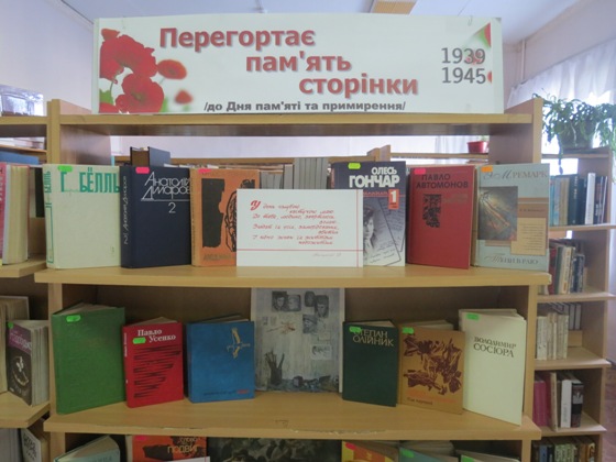 8 – 9 травня - День пам'яті та примирення, Ця історична подія символізує вічну скорботу за тими, хто заплатив життям за мирне майбутнє прийдешніх поколінь. Сьогодні, ми українці, по-новому сприймаємо слова про патріотизм та самопожертву, по-іншому, з більшою силою оцінюємо стійкість і мужність старшого покоління. Ваш приклад відданості рідній землі наслідують ваші діти і онуки — воїни української армії, захищаючи незалежність та цілісність країни на східних фронтах. До цієї скорботної дати у читальному залі (7-й поверх) розгорнуто книжкову виставку "Віхи памяті і слави", а на абонементі художньої літератури (4-й поверх) — "Перегортає пам'ять сторінки. 1939- 1945". Для студентських груп протягом травня будуть проводитися урок мужності "Хмельниччина у роки Другої світової війни 1939-1945 років", урок дослідження "Світові війни очими письменників: творчість Е.-М. Ремарка та Г.Белля" ![]() ![]() |