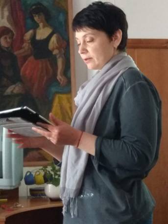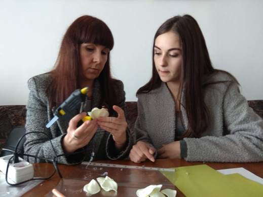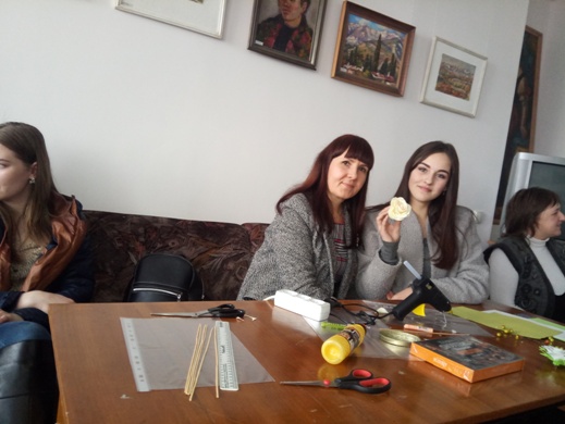 Вікторія Валеріївна Хренова - кандидат педагогічних наук, доцент кафедри технологічної та професійної освіти та декоративного мистецтва ХНУ. Свій вільний час вона проводить в пошуках нестандартних художніх технік та майстерно їх освоює. Для присутніх Вікторія Валеріївна провела майстер-клас з виготовлення квітів з фоаміраму.