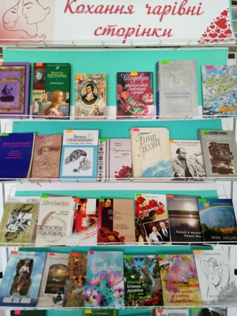 Привернула увагу учасників заходу книжкова виставка "Кохання чарівні сторінки" та добірка книг про квіти "Земля сміється квітами".