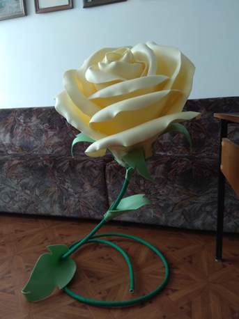 Символом поетичного вернісажу стала біла троянда, яку виготовив з ізолону студент гр. ТНмз-18-1 В.М.Малець. (Техніка "Виготовлення ростових штучних квітів з різних матеріалів").