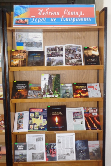 20 лютого – День Героїв Небесної Сотні 20 лютого ми відзначаємо героїчну і надзвичайно болісну для всіх дату - День Героїв Небесної Сотні. Саме цей день у 2014 році став найдраматичнішим і переломним етапом Революції гідності, днем масових розстрілів мирних демонстрантів у Києві. Своє життя віддали найкращі представники нації, більшість з них – молодь, ті, хто лише починав жити. Серед Героїв Небесної Сотні і наші краяни: Бондарчук Сергій, Васильцов Віталій, Дзявульський Микола, Клітинський Олександр, Корнєєв Анатолій, Мазур Артем, Пагор Дмитро, Подригун Олександр, Володимир Чаплінський, Шеремета Людмила. Вони не побоялися глянути смерті у вічі заради утвердження національної ідеї. Йшли вони під кулі не задля слави чи з особистих мотивів, а щоб вибороти гідне майбутнє своєму народові. Герої не вмирають – вони дивляться на нас із фото, відео, знову і знову йдуть у свій останній бій. Їхній подвиг навічно залишиться в душах і серцях українців як приклад національної честі й гідності. З нагоди п‘ятої річниці вшанування Героїв Небесної Сотні у читальному залі розгорнуто книжкову виставку "Небесня Сотня. Герої не вмирають", на якій представлені книги, що висвітлюють події під час Революції гідності, розповідають про мужність і героїзм її учасників. На сайті бібліотеки можна переглянути віртуальну виставку "Героїчних сердець височінь: Герої Небесної Сотні Хмельниччини". У студентських групах пройдуть уроки мужності про героїв Небесної Сотні Хмельниччини.