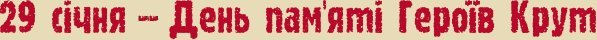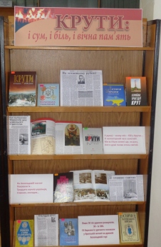 Ярить крізь відстані і час. Було їх триста...Триста перший - І ти, І я, І кожен з нас! Бій під Крутами – це одна з найгероїчніших, але водночас найтрагічніших сторінок в українській історії. Кілька сотен українських студентів і добровольців на підходах до Києва поблизу залізничної станції Крути, що на Чернігівщині, 29 січня 1918 року протистояли кількатисячній більшовицькій армії Муравйова. Сили були нерівними, бій тривав лише п’ять годин. Всі студенти загинули... Крутянський бій став символом героїзму та відданості Українській державі й національній ідеї, а його дата – 29 січня 1918 року – Днем пам’яті Героїв Крут. До 101-ї річниці бою під Крутами у читальному залі (7-й поверх) розгорнуто книжкову виставку "Крути: і сум, і біль, і вічна пам’ять", в експозиції якої представлено статті з періодичних видань, які містять невідомі і маловідомі документи; матеріали наукових досліджень і конференцій; свідчення та спогади учасників бою під Крутами; художні видання, публіцистику. Герої Крут були, є і будуть гідним взірцем мужності для всіх наступних поколінь захисників рідної країни. ![]() |