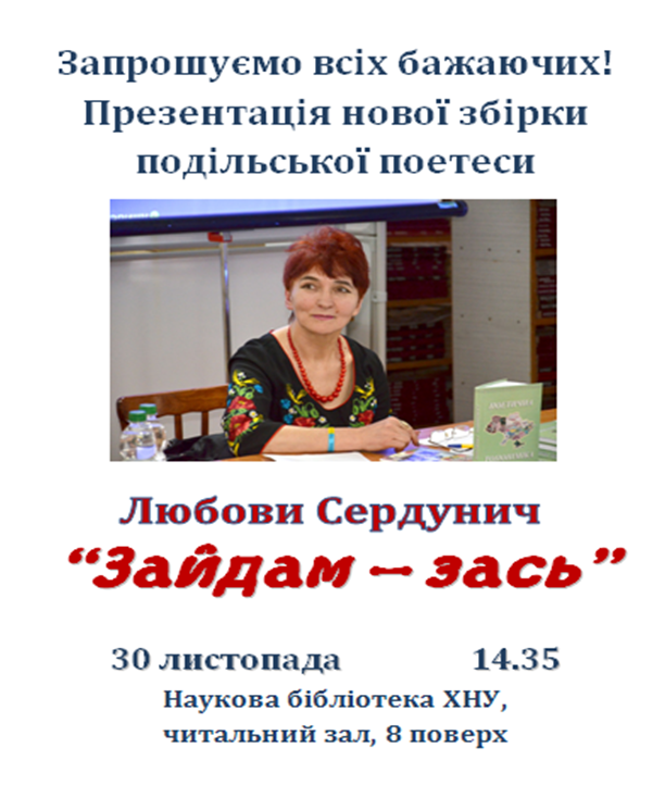 30 листопада відбулася презентація нової збірки патріотичної поезії та прози Любови Сердунич зі Старої Синяви "Зайдам - зась" детальніше