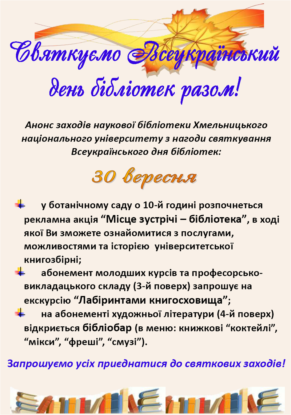 Святкуємо Всеукраїнський день бібліотек разом! детальніше |