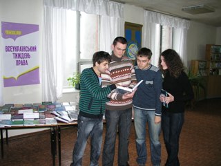 Всеукраїнський тиждень права щорічно проводиться згідно Указу Президента України від 8.12.2008 р. 10 грудня - День прав людини, який відзначається з нагоди проголошення Генеральною Асамблеєю ООН у 1948 році Загальної декларації прав людини. Тиждень права спрямований на утвердження в Україні правової держави, на підняття рівня правової культури, поваги до найвищих цінностей, які охороняються правом. В рамках Всеукраїнського тижня права з 7 по 13 грудня в читальному залі наукової бібліотеки (7 поверх) організовано: